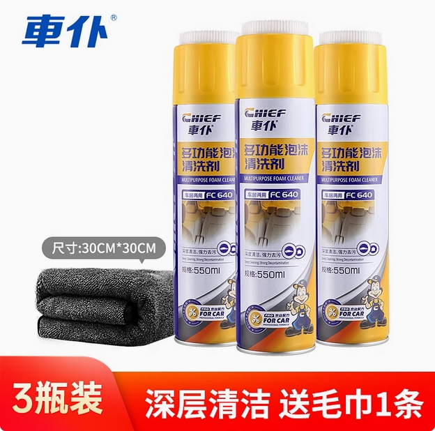 3瓶车仆多功能泡沫清洗剂汽车内饰清洗剂车内清洁强力油污去除剂