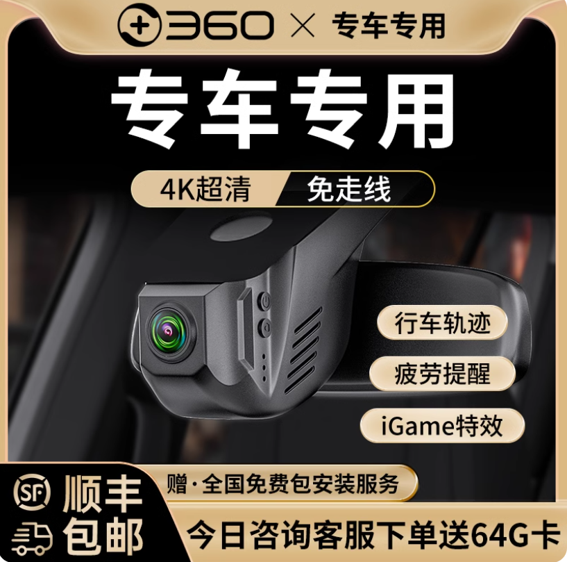 360专车专用Z500汽车车载行车记录仪2025新款免走线前后双摄25款