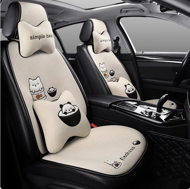 汽车坐垫四季通用座椅套单片防滑可爱小熊女神三件套卡通半包座垫