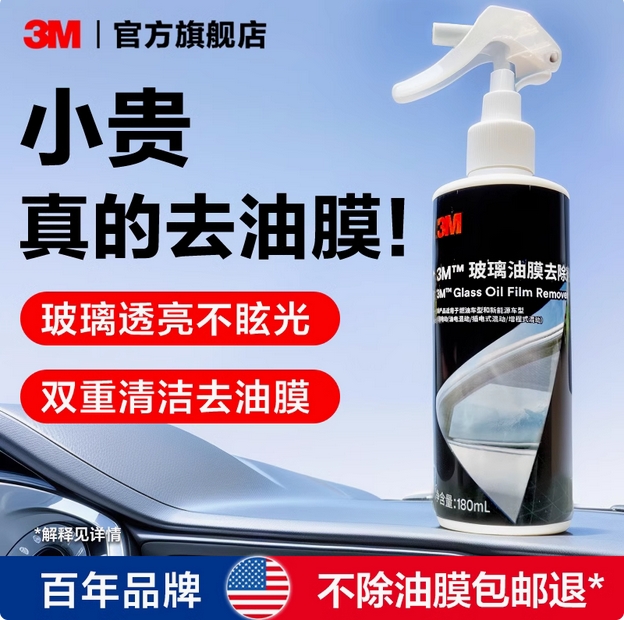 3M去油膜清洗剂汽车专用强效去污前挡风玻璃车窗清洁剂油膜去除剂