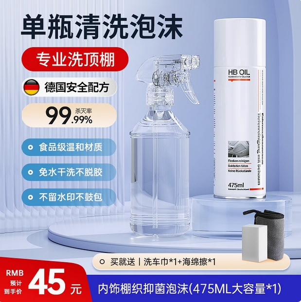 汽车内饰顶棚清洗剂车内绒面车顶织物翻新专用免水洗泡沫清洁神器