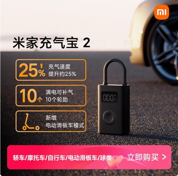 小米米家充气宝2车载充气泵电动打气筒便携式轮胎打气泵小气泵