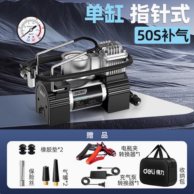 得力车载充气泵汽车用双缸便携式小轿车高压大功率轮胎自动打气泵