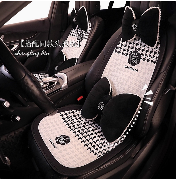 新款汽车坐垫夏季座椅套四季通用网红山茶花半包座垫单片女神车垫